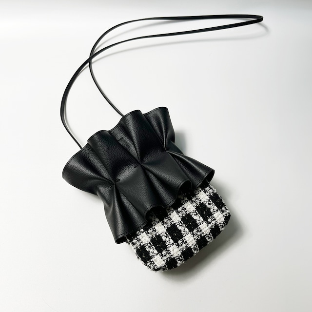 〈フリルスマホショルダーバッグ〉Tweed Black check