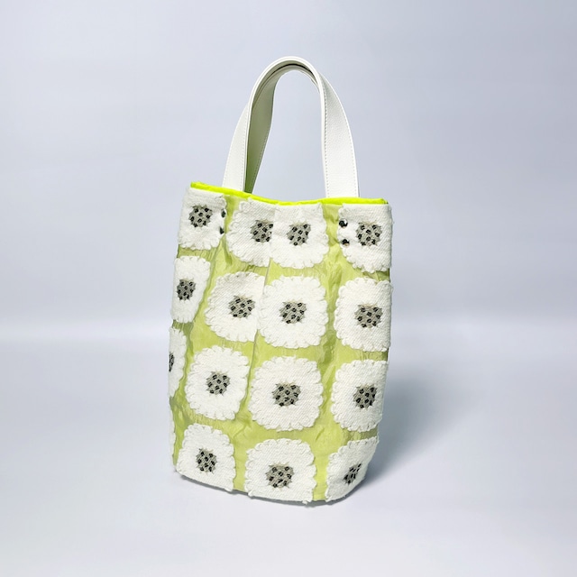 〈ミニトート〉White flower ■価格 15,400円 税込 (14,000円 税抜) ◾️カラー [White flower] 裏地:ライム ◾️ポイント ・オーガンジーに温かみのあるジャガードのお花が施された生地に、発色の良いライムグリーンの生地を重ねました。さりげない透け感が可愛いです ・口にダーツを入れて立体感を。トートバッグですが、ハンドバッグらしい上品さも加えました ・底面を本体生地と異なる合皮にしており、側面がくたっとしたバッグですが、思いのほか荷物の出し入れがしやすくなっています ・軽く、荷物が少なめの方やちょっとのお出かけに持ちやすいです ・太めのハンドルで、腕への負担を軽減 ◾️素材 (表地)ポリエステル80% アクリル10% レーヨン10%、コットン(裏地)コットン(持ち手)合皮 ◾️サイズ 幅 21cm 高さ 28cm 底面マチ 12.5cm 底面幅 17.5cm 持ち手の長さ 29cm 重さ 213g ◾️詳細 ポケット::内1個 ................................................................................. ○商品画像は、出来る限り実物の色味に近くなるよう心がけておりますが、光の当たり具合やスマートフォン・パソコンなどの閲覧環境により、実物と色味が異なる場合がございます。