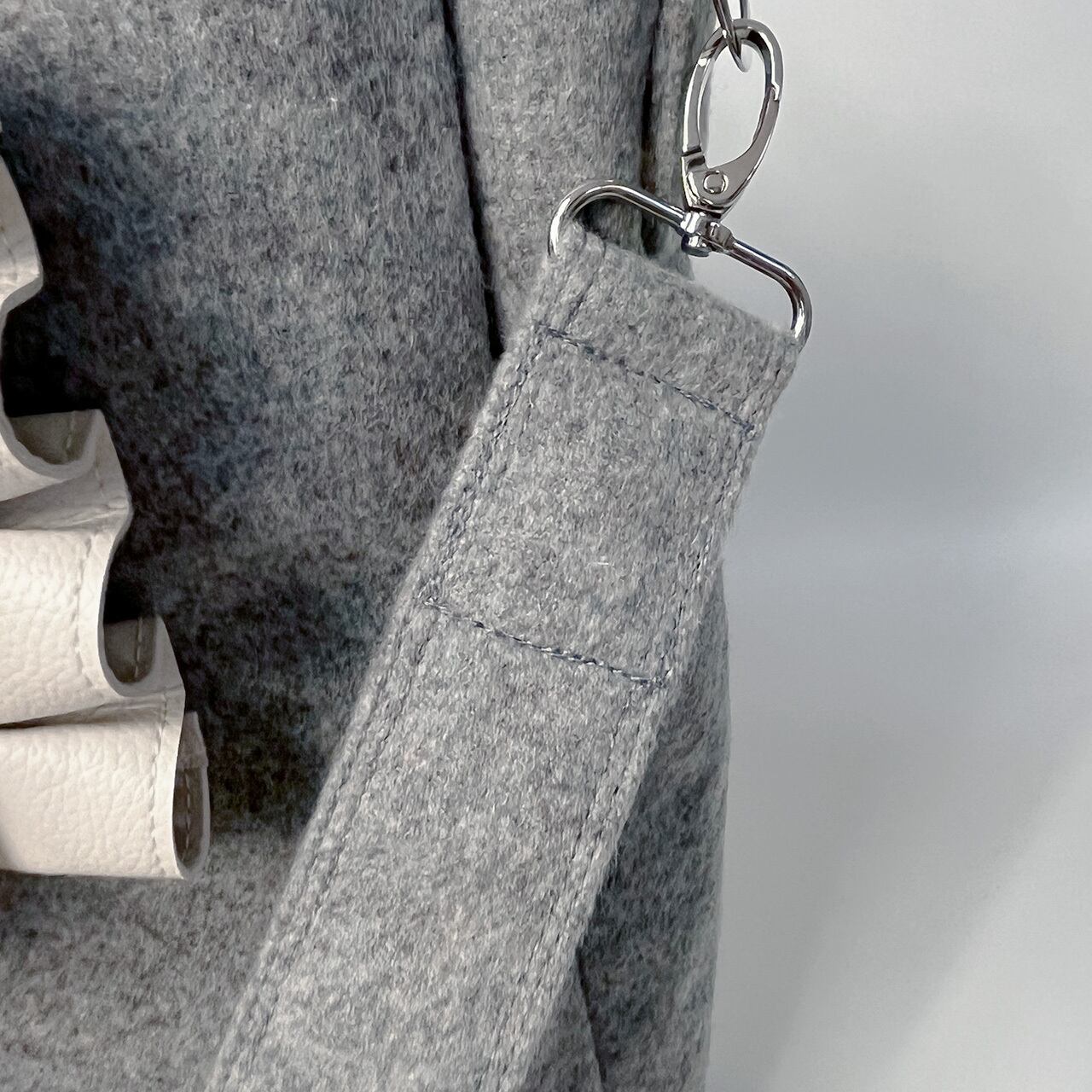 ・斜めがけ用のショルダーベルトは、デザイナー身長159cmで、腕を伸ばした時にバッグの底に手が届く長さに設定しています。