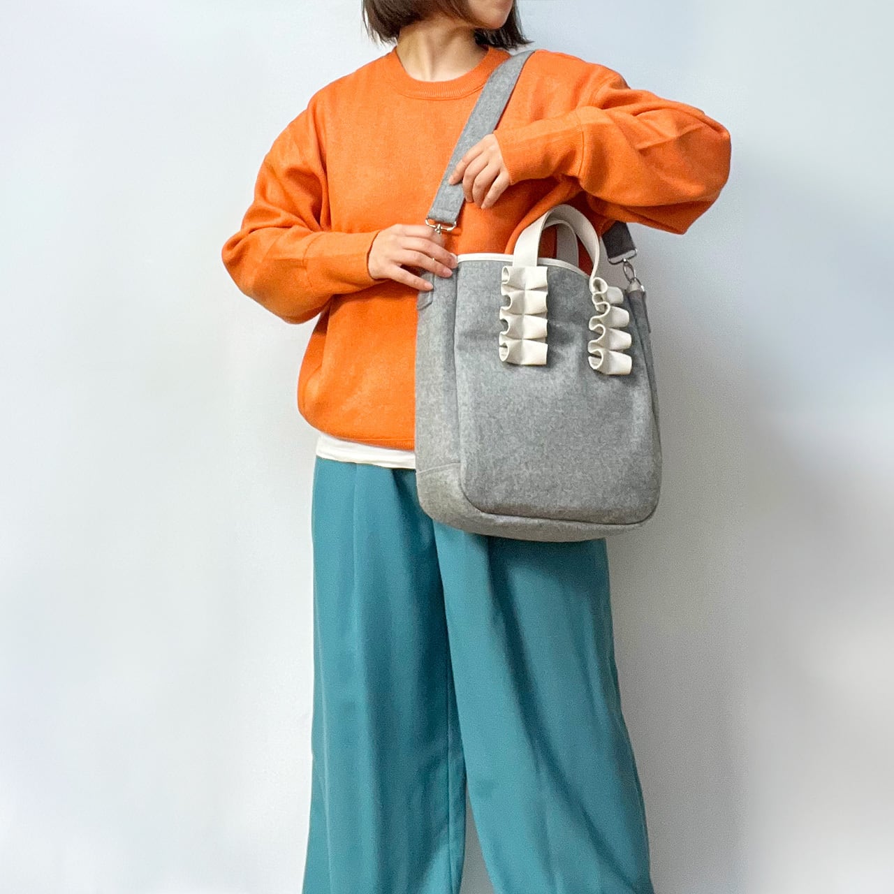 〈フリルハンドル3wayトートバッグ〉
