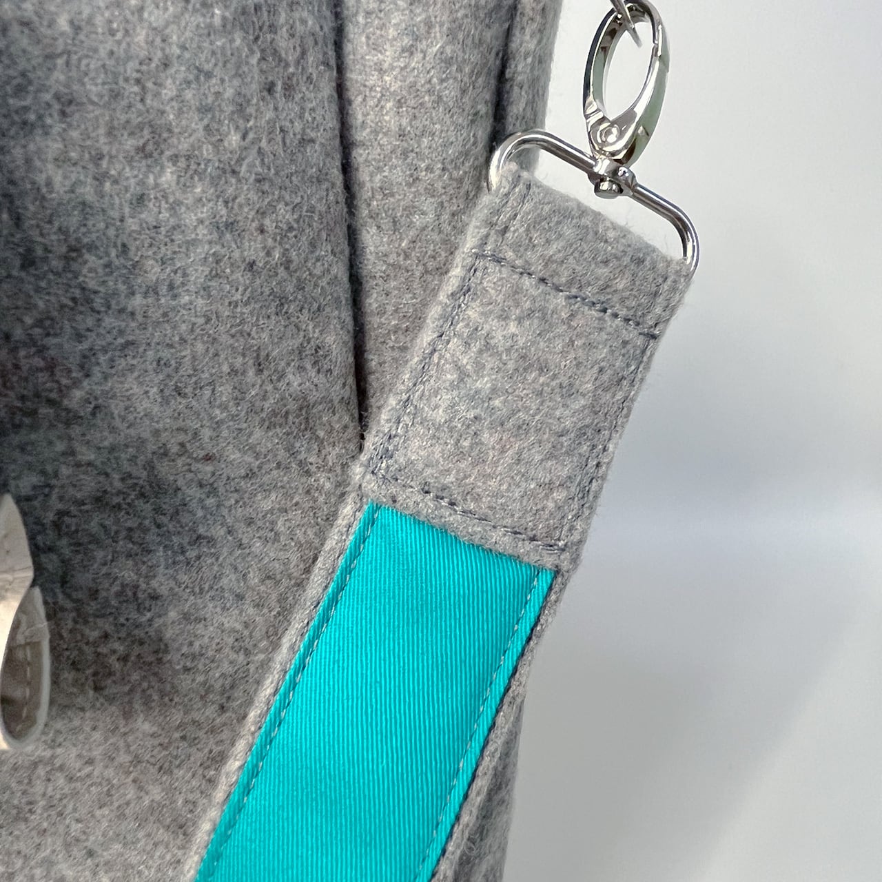 ・ショルダーベルトは、①ワンハンドル肩掛け用と②斜めがけ用とで、長さの異なるものが2本付属します。荷物が重くなることを想定し、重量を抑えたいことと肩当たりが良いことを重視し、長さ調節金具を使用しないことにしました。
