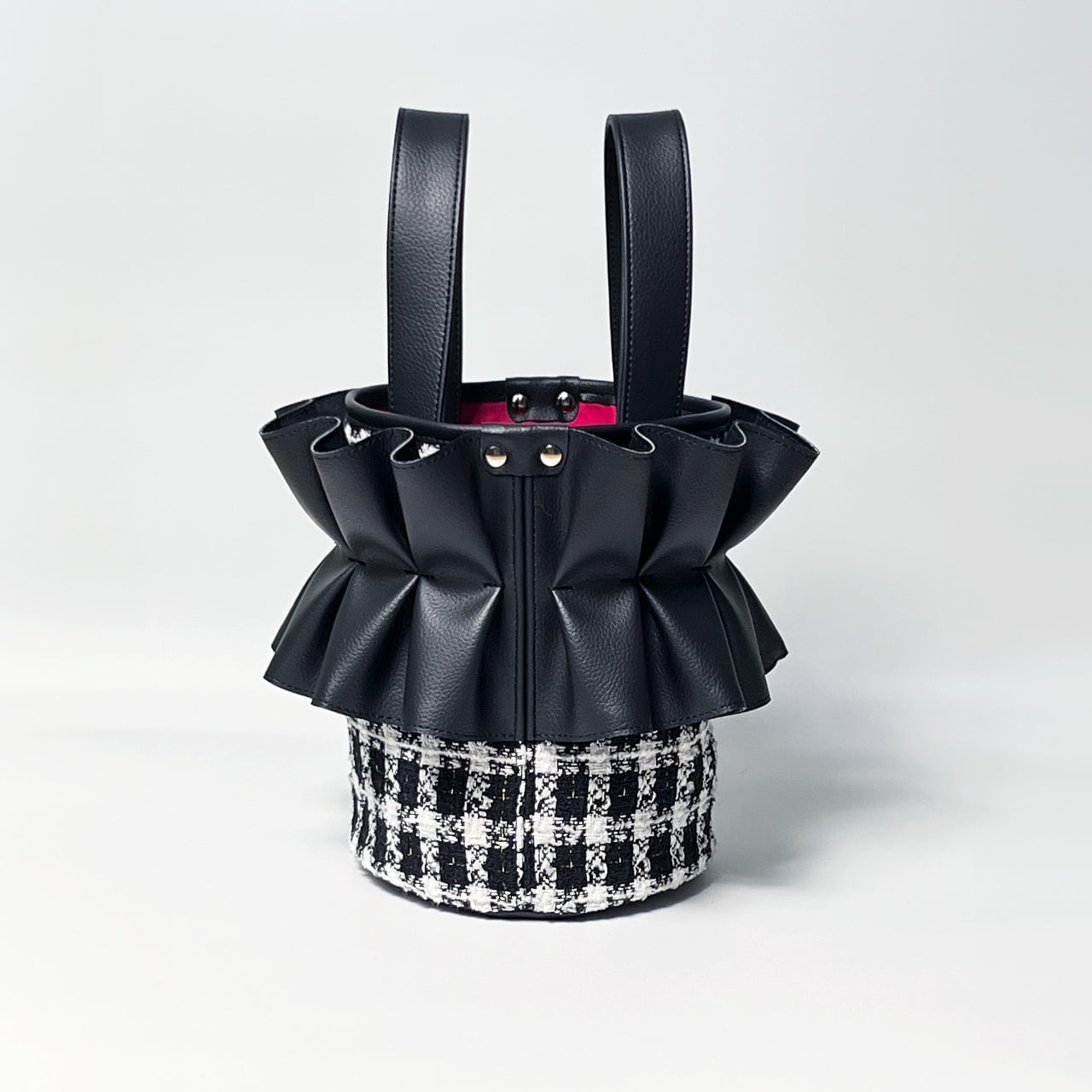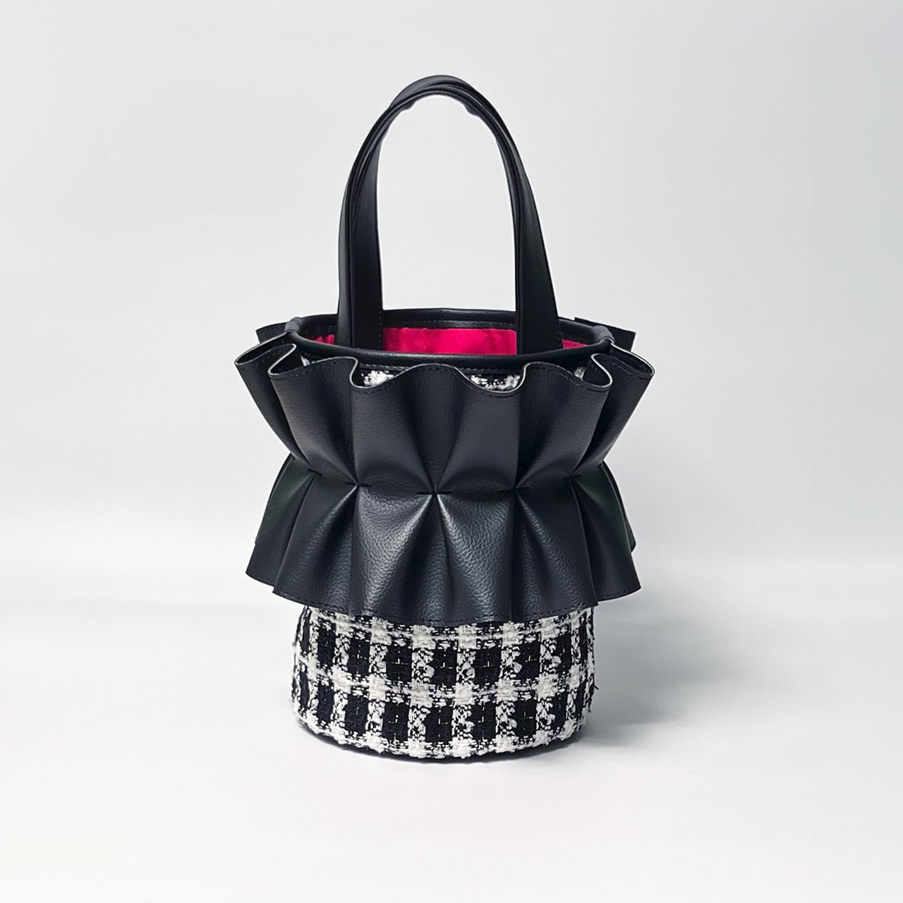 (表地)ツイード、合皮フリル、撥水帆布(裏地)コットン(持ち手)合皮