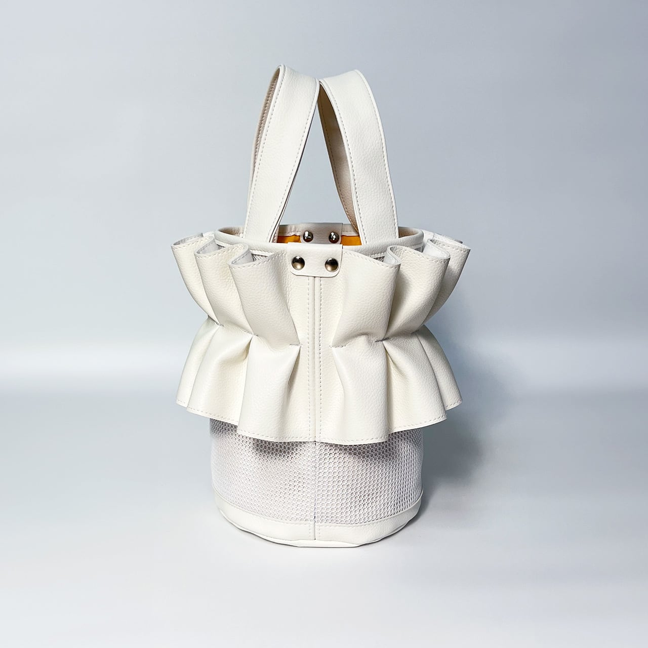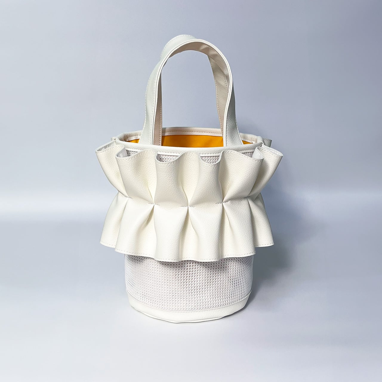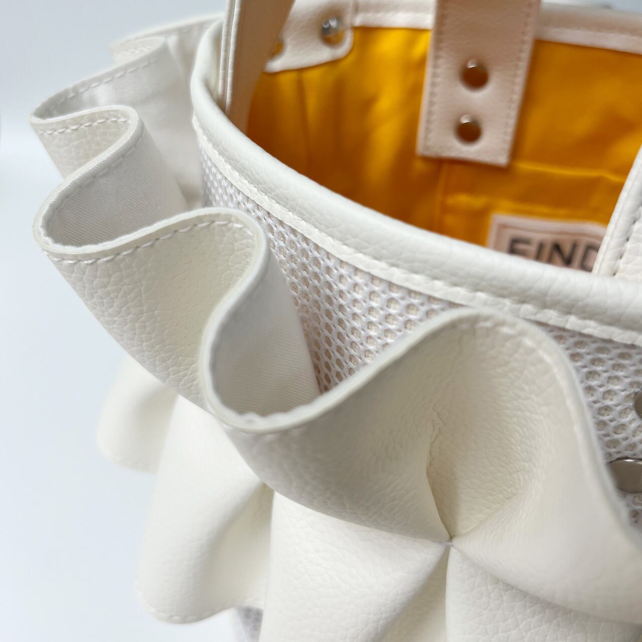 (表地)ポリエステル、コットン、合皮フリル(裏地)コットン(持ち手)合皮