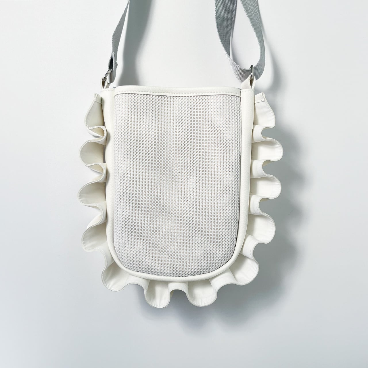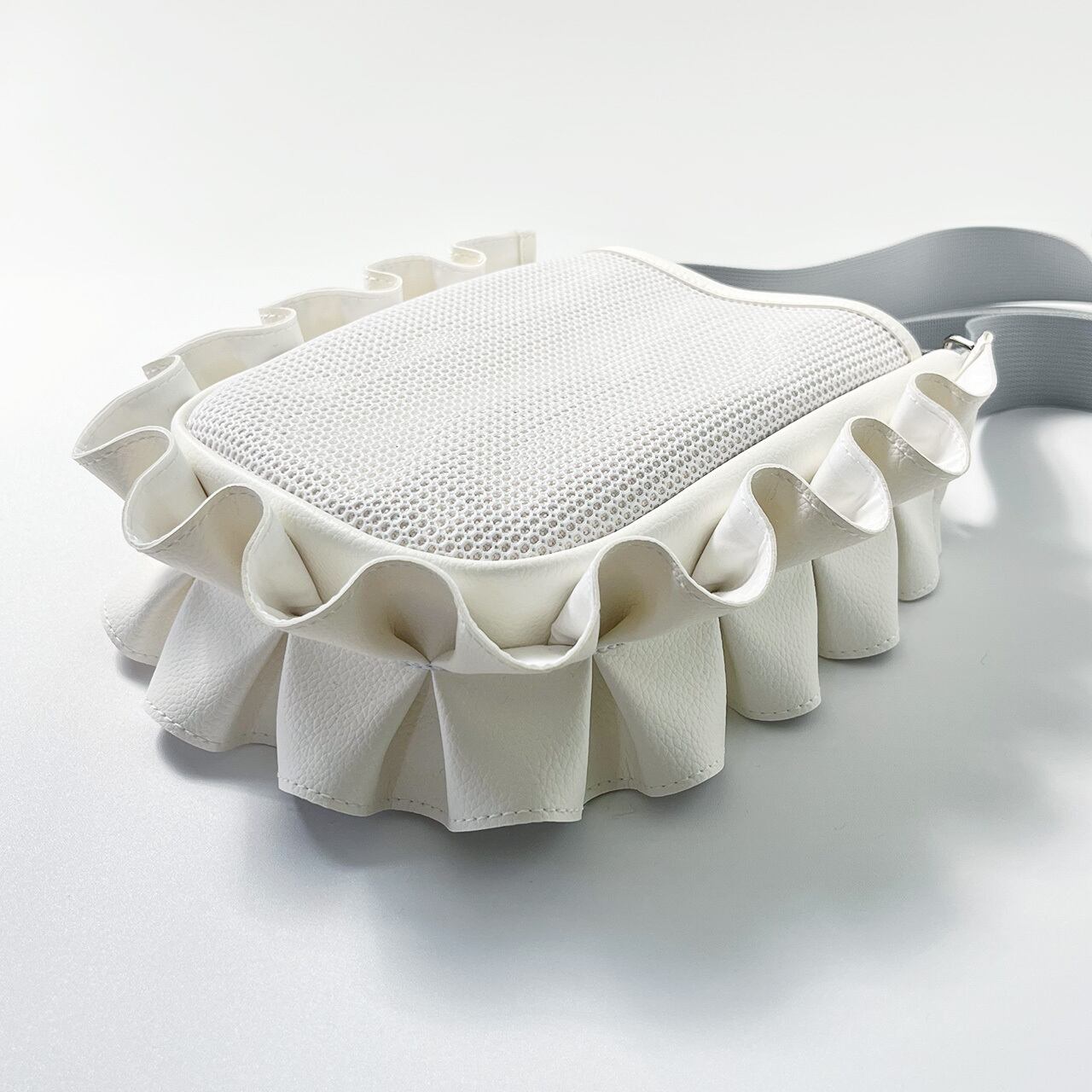・側面に施された合皮のフリルが、大胆ながら持つとさりげなくて可愛いです