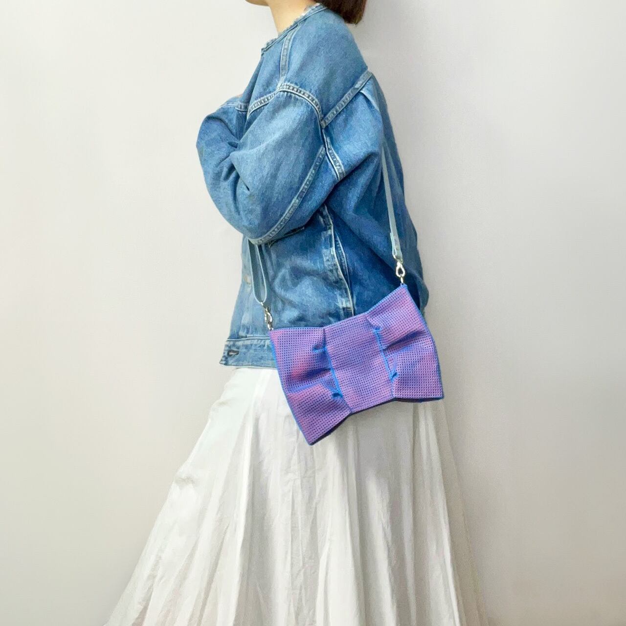 色の組み合わせで自分らしさを出すのも楽しいですし、リボンがネックレスをしているみたいになって、バッグにコーデの主役感をプラスしたい時にもおすすめです。
