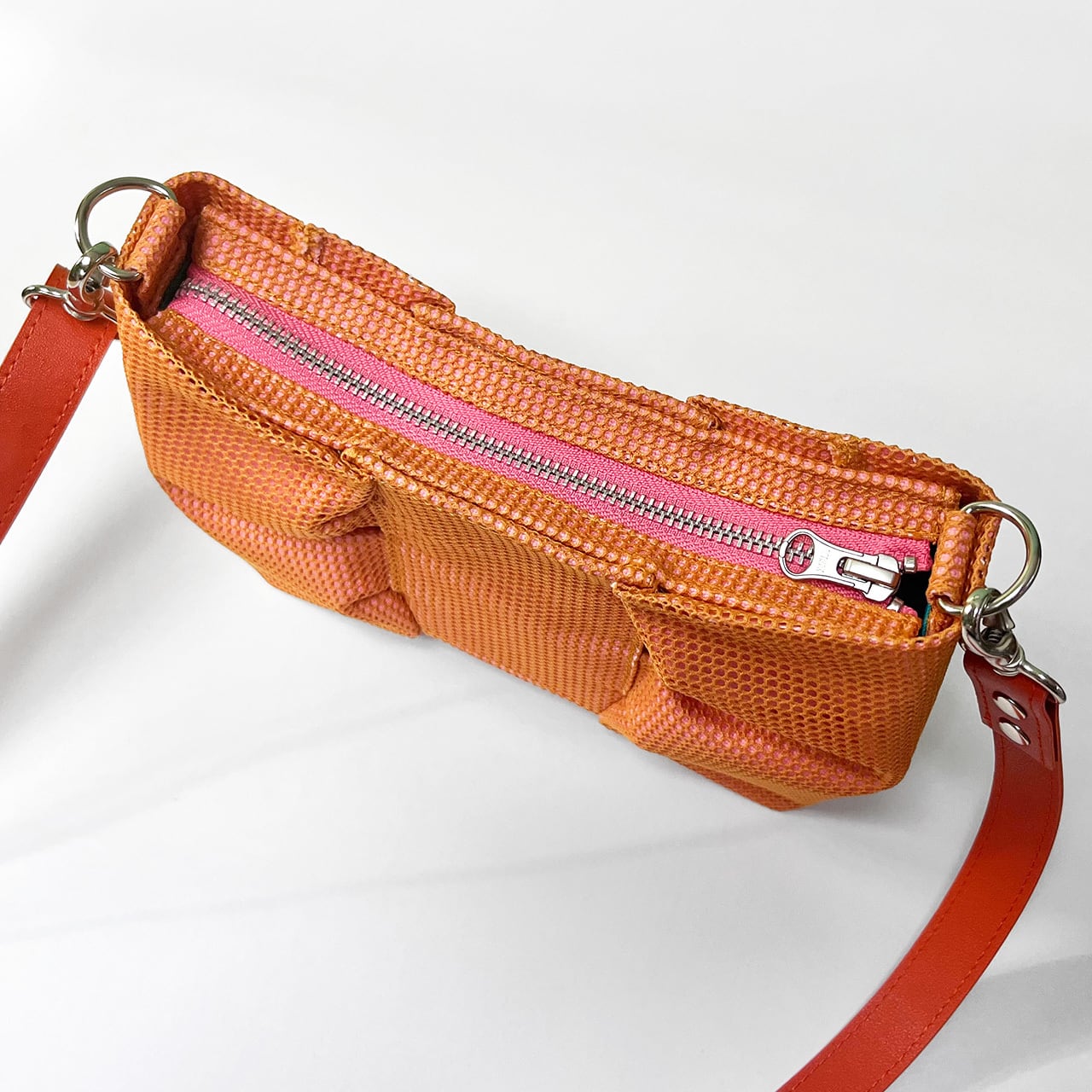 表地は、撥水コットン帆布にメッシュ生地を合わせた2枚仕立てです。