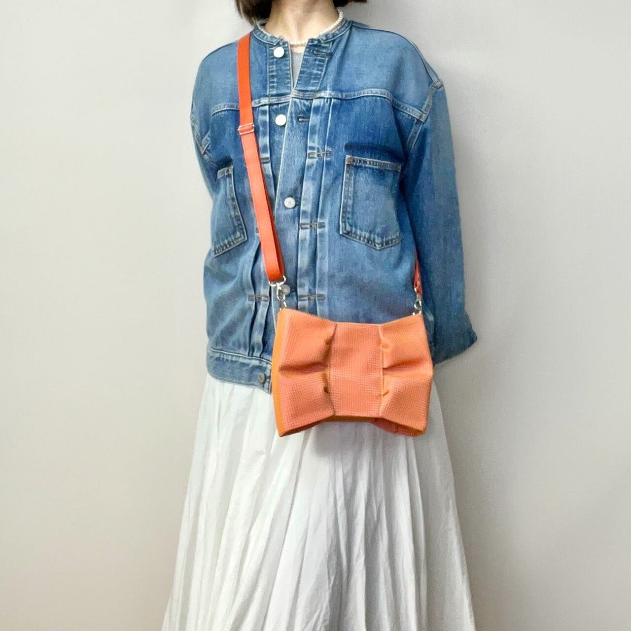 色の組み合わせで自分らしさを出すのも楽しいですし、リボンがネックレスをしているみたいになって、バッグにコーデの主役感をプラスしたい時にもおすすめです。