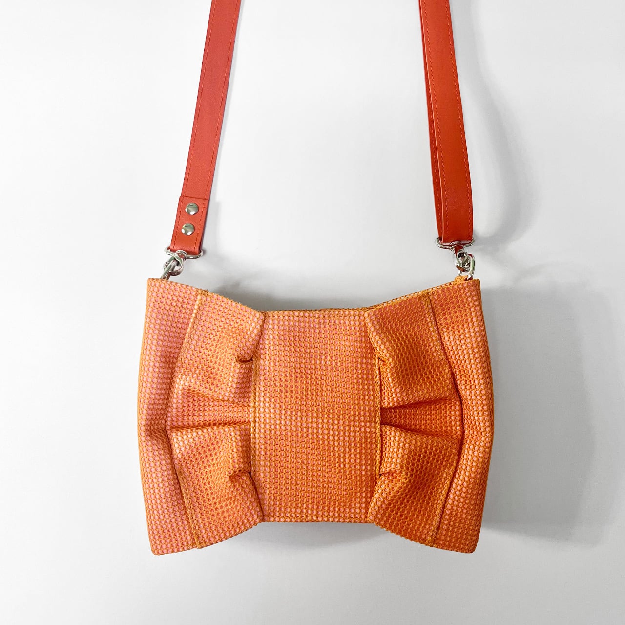 大きなリボンを丸ごとバッグにしたようなデザイン。前から見ても後ろから見てもリボンです。