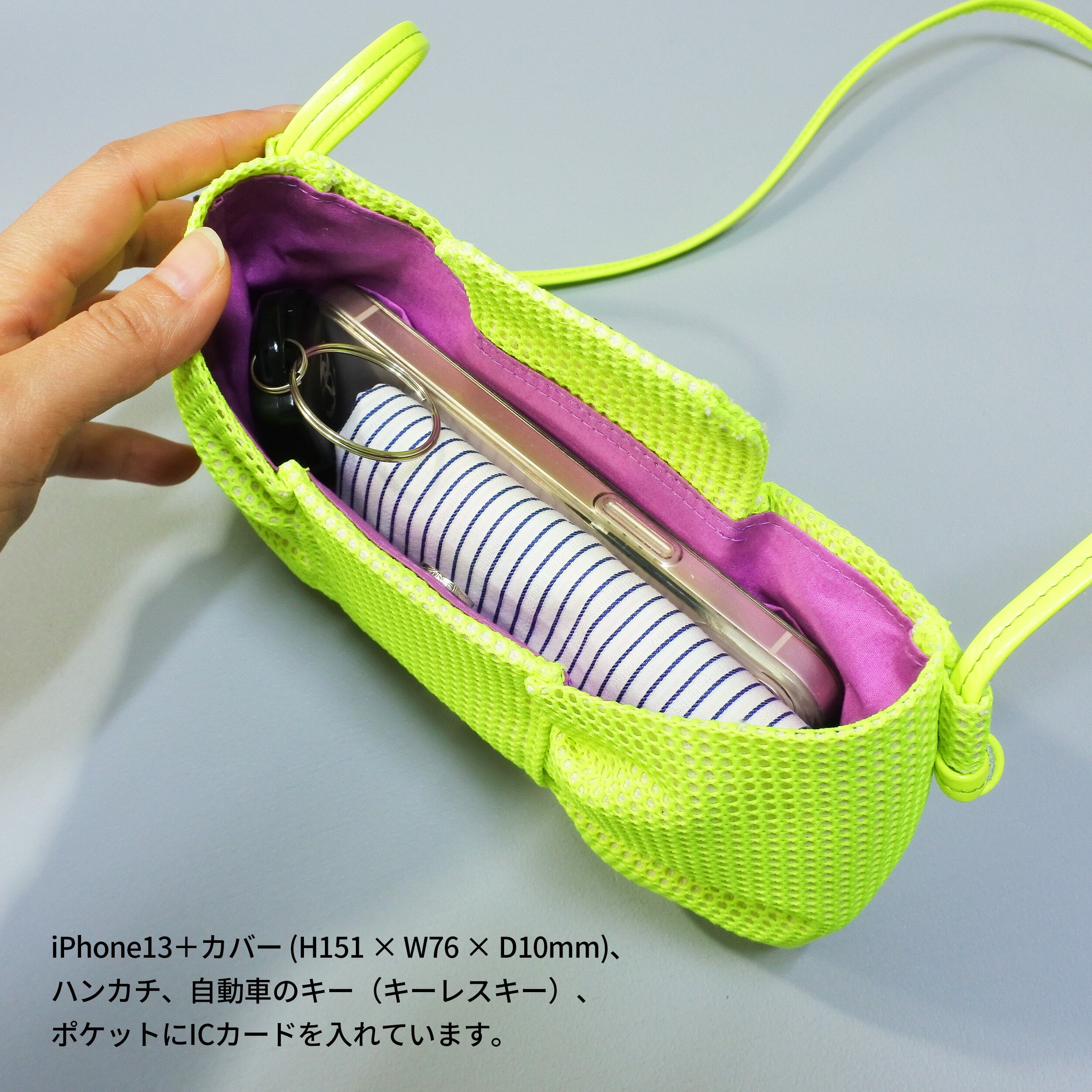 スマホ収納をメインとした、コンパクトなショルダーバッグです。開閉は、片手での出し入れがしやすい、マグネットボタン式です。内ポケットにICカードを入れた状態で、スキャンしていただけます。