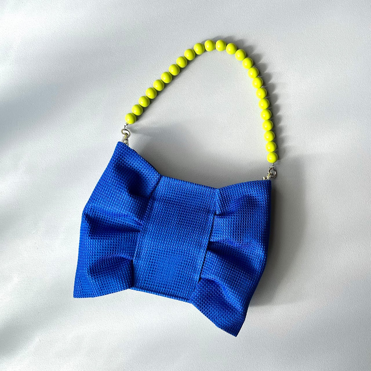 深いロイヤルブルーに鮮やかなイエローグリーンが輝きます。引き立て合う2色が美しいです。